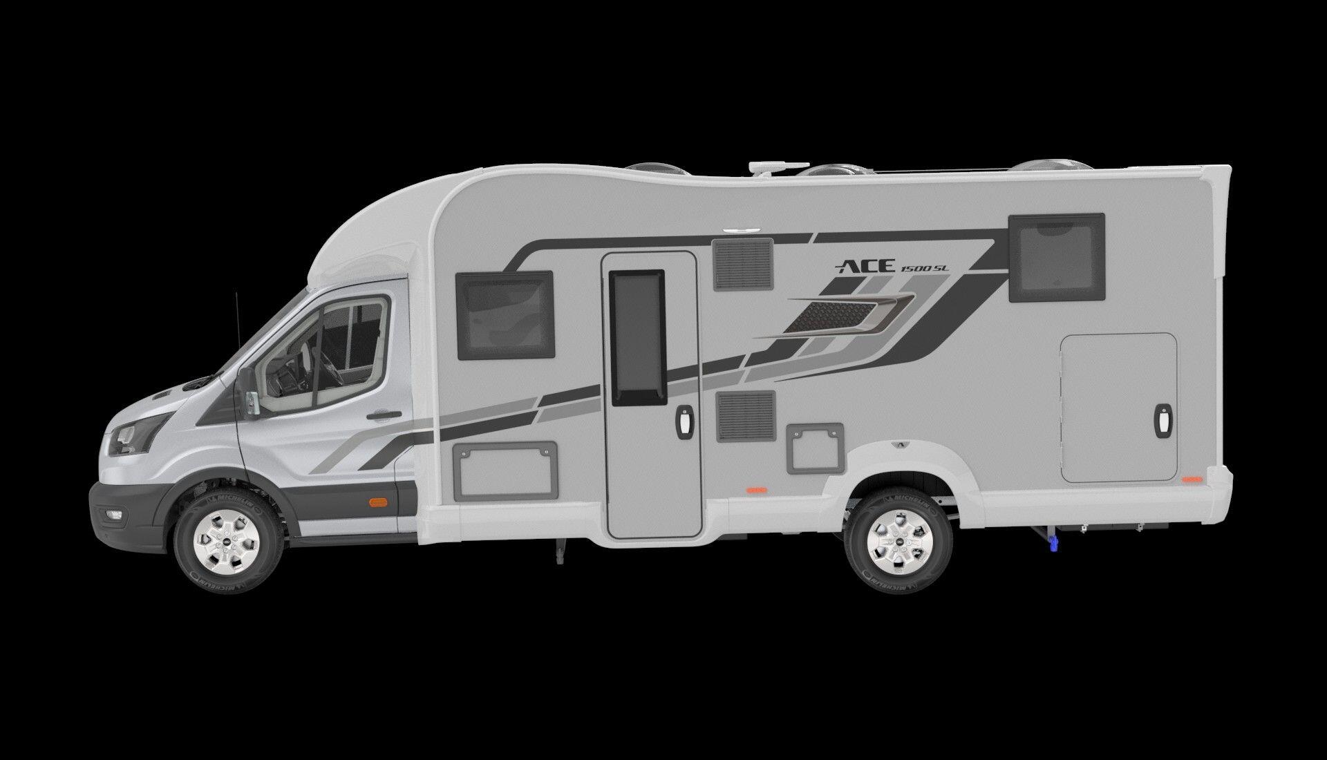AVAILABLE TO PRE-ORDER NOW! Introducing the all new ACE campervan and motorhome range, great build quality and exceptional value for money. This model is based on a Ford chassis and available with automatic or manual transmissions. This coach-built motorhome is available in a 4 belt and 4 berth version, or a 2 berth and 2 belt. This example has the optional Comfort Pack which includes: Moondust silver paint, 16 inch Alloys Wheels, 12 inch media Screen, Reversing Camera, Habitation Carpets, Shower Duck Board, Shower Hanging Rail, Coat Hooks, Scatter Cushions, Bike Rack Fixing Rails, 120W Solar Panel