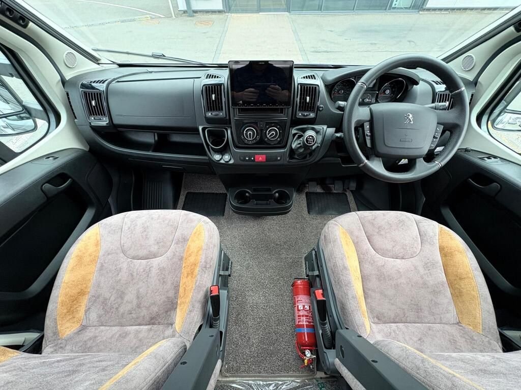 Lovely clean example of the popular Autosleeper Nuevo with end kitchen layout, right hand drive manual vehicle, 2 belt/2 berth in white with a grey/stone interior trim. The vehicle is fitted with under slug LPG, washroom with separate shower and toilet, skylights, microwave, oven, gas hob, electric hob, 3 way fridge, truma inet, sink, solar, window blinds, side awning, captain swivel seats, electric side step, towbar, roof mounted solar, many internal and external storage compartments and much more. Cabin features include zenec MMI screen with reverse camera function and cabin air con, electric windows and mirrors, bluetooth connection etc. Please to offer a walk round video, facetime call or a video to help you get an understanding of the vehicle. Length 5.75m, Height 2.89m. Please call 01522 246777 for more details.
