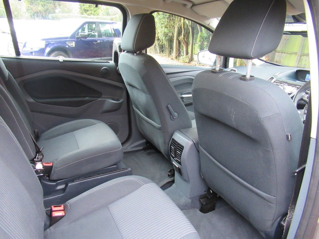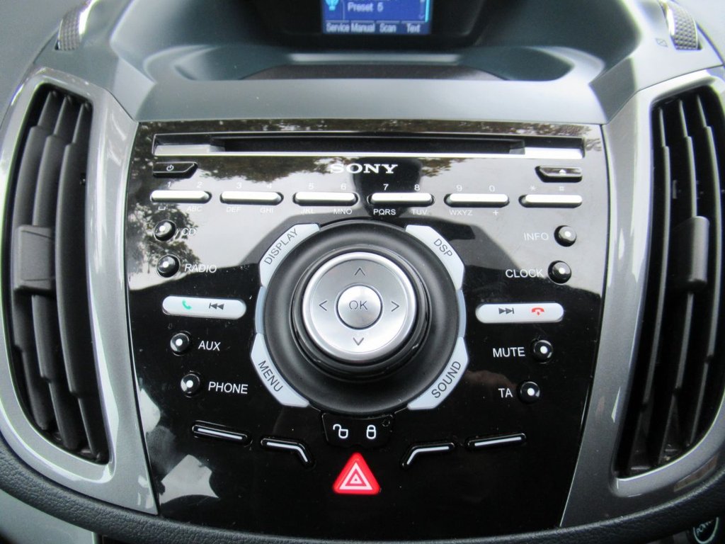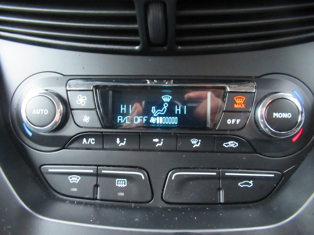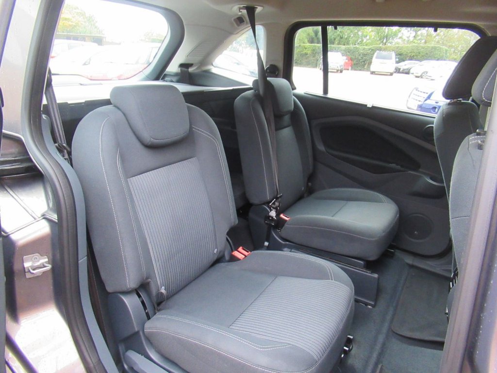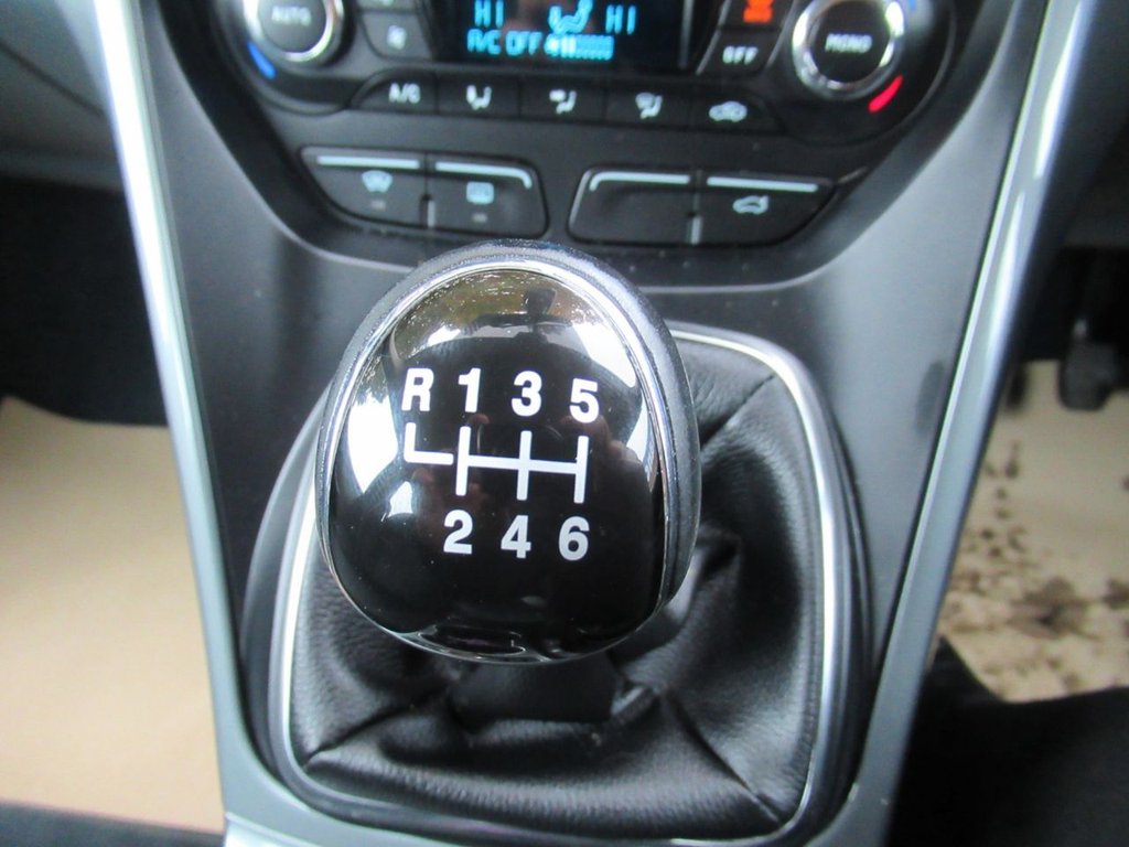 Cruise control + speed limiter, Easy fuel capless refuelling system, Ford SYNC Bluetooth connection with voice control and USB port, PAS, Trip computer, 3 point seatbelts, ABS + traction control, Driver and passenger airbags, Driver and passenger side airbags, Electronic brake force distribution, Emergency brake assist, ESP, Fasten seatbelt reminder, Front and rear curtain airbags, Height adjustable front seatbelts, Hill start assist, Intelligent Protection System (IPS), Power child locks, Tyre pressure monitoring system, Anti-theft immobiliser, Locking wheel nuts, Remote central double locking, Thatcham 1 volume sensing alarm, Remote audio controls on steering wheel, 12V accessory sockets - front and rear, 4 spoke leather steering wheel, Aluminium scuff plates, Ambient interior lighting, Auxiliary power socket, Centre armrest with storage box, Child observation mirror, Cloth upholstery, Courtesy light in luggage compartment, Driver/passenger lumbar adjustment, Driver/passenger manual seat height adjust, Dual zone electronic climate control, Footwell illumination, Front/rear courtesy lights, Front/rear reading lights, Fully adjustable front headrests, Isofix child seat attachment, Leather gearknob, Premium centre console, Premium floor mats, Rake/reach adjustable steering wheel, Satin chrome interior door handles, Sports style front seats, Three height adjustable rear head restraints, Tonneau cover, Versatile split folding rear seat - 40/20/40, 'Global' closing of front/rear windows, Auto dimming rear view mirror, Automatic headlights, Automatic rain sensing wipers, Body coloured bumpers with black rubbing strip, Body coloured door handles, Body coloured door mirrors with integral indicators, Chrome finish on upper door line, Dual sliding rear doors, Electric folding door mirrors, Electric front windows, Electric heated door mirrors, Electric rear windows, Front fog lamps, Intermittent rear wash/wipe, Quickclear heated windscreen, Diesel particulate filter