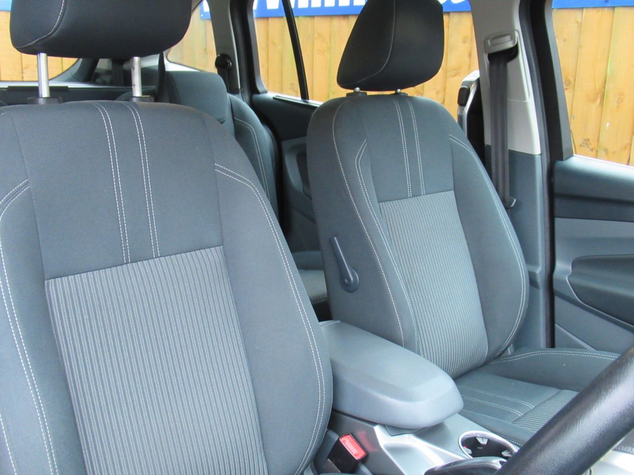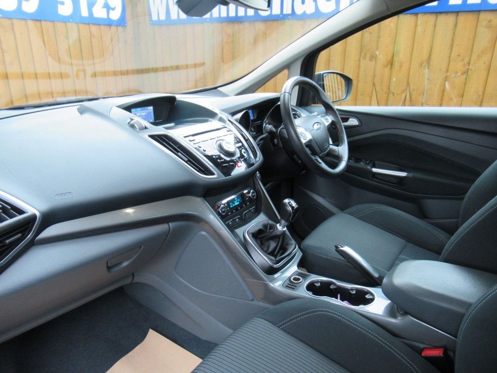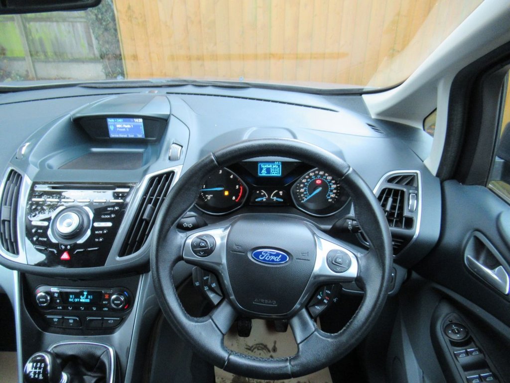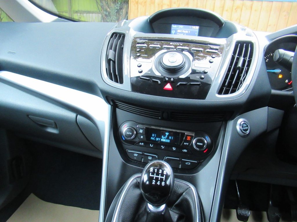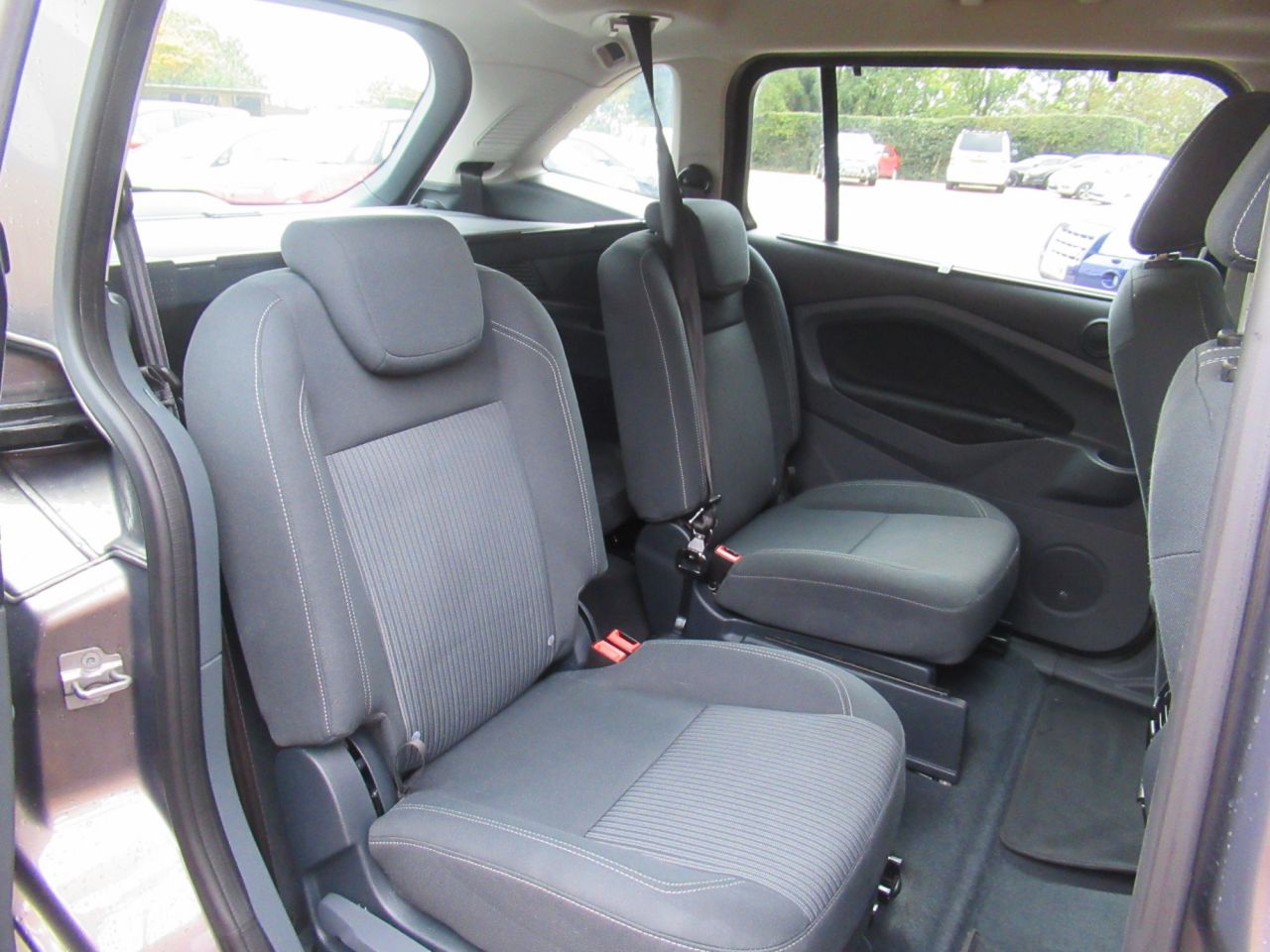 Cruise control + speed limiter, Easy fuel capless refuelling system, Ford SYNC Bluetooth connection with voice control and USB port, PAS, Trip computer, 3 point seatbelts, ABS + traction control, Driver and passenger airbags, Driver and passenger side airbags, Electronic brake force distribution, Emergency brake assist, ESP, Fasten seatbelt reminder, Front and rear curtain airbags, Height adjustable front seatbelts, Hill start assist, Intelligent Protection System (IPS), Power child locks, Tyre pressure monitoring system, Anti-theft immobiliser, Locking wheel nuts, Remote central double locking, Thatcham 1 volume sensing alarm, Remote audio controls on steering wheel, 12V accessory sockets - front and rear, 4 spoke leather steering wheel, Aluminium scuff plates, Ambient interior lighting, Auxiliary power socket, Centre armrest with storage box, Child observation mirror, Cloth upholstery, Courtesy light in luggage compartment, Driver/passenger lumbar adjustment, Driver/passenger manual seat height adjust, Dual zone electronic climate control, Footwell illumination, Front/rear courtesy lights, Front/rear reading lights, Fully adjustable front headrests, Isofix child seat attachment, Leather gearknob, Premium centre console, Premium floor mats, Rake/reach adjustable steering wheel, Satin chrome interior door handles, Sports style front seats, Three height adjustable rear head restraints, Tonneau cover, Versatile split folding rear seat - 40/20/40, 'Global' closing of front/rear windows, Auto dimming rear view mirror, Automatic headlights, Automatic rain sensing wipers, Body coloured bumpers with black rubbing strip, Body coloured door handles, Body coloured door mirrors with integral indicators, Chrome finish on upper door line, Dual sliding rear doors, Electric folding door mirrors, Electric front windows, Electric heated door mirrors, Electric rear windows, Front fog lamps, Intermittent rear wash/wipe, Quickclear heated windscreen, Diesel particulate filter