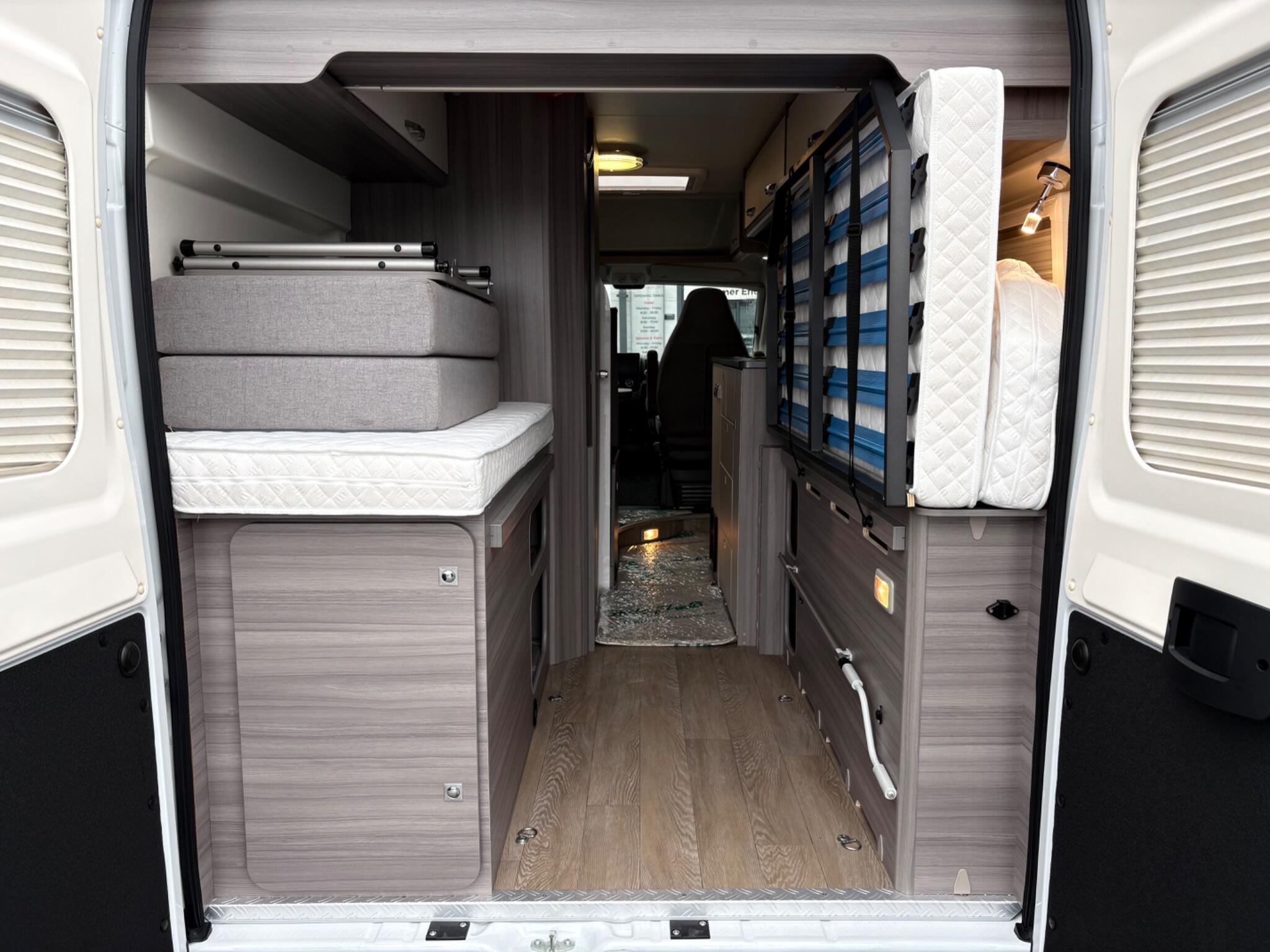 A Great value motorhome that has hardly been used. Only one owner from new and has very low mileage. A 4 belted seat and 3 berth van with and end fixed double bed over a storage area, a front dining area converts into a sleeping area for another person. A great saving from new! Features include a Truma combi boiler, awning, alloy wheels, solar panel, Dometic fridge, skylights, swivel front seats, gas hob, toilet, shower and much more. For more information call 01522 246777.