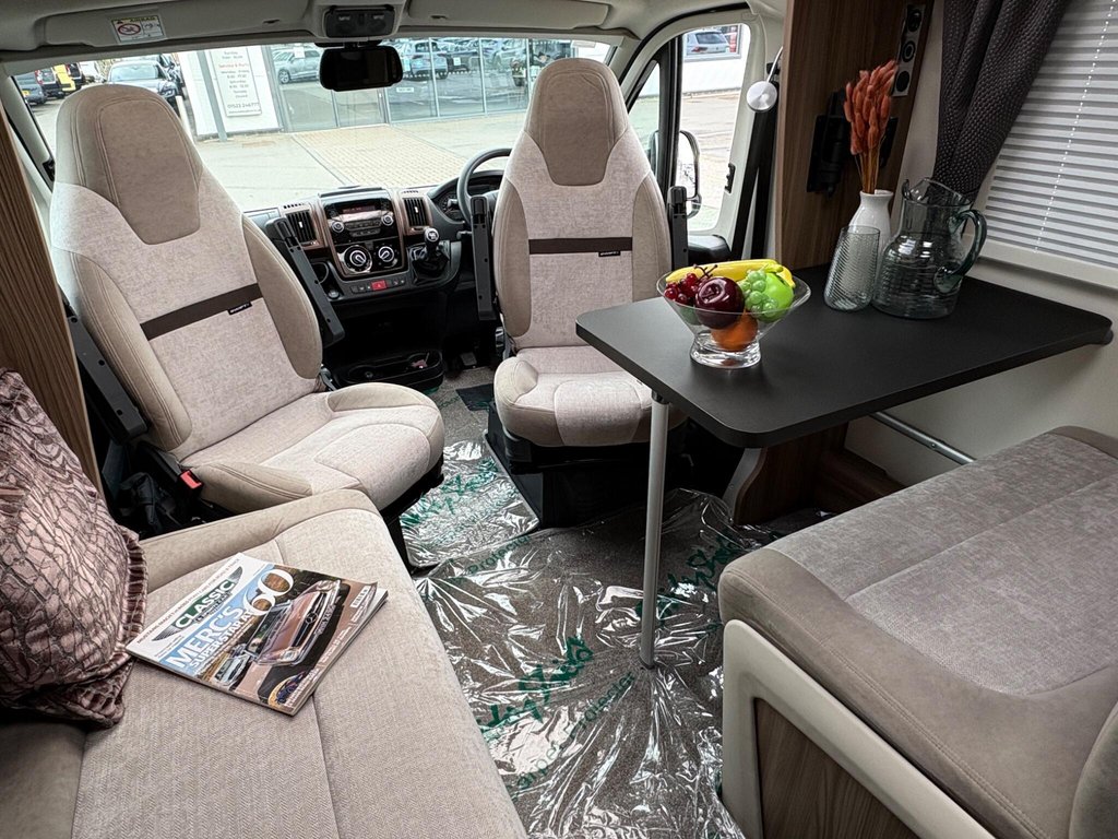 Only one owner from new and has great mileage for the age. A 4 belt and 4 berth model with an end washroom and fixed single beds layout, the lounge conversion makes up a sleeping area for 2 more people. A very luxurious layout with features such as a bike rack, skylights, solar panel, oven, hob, grill, blinds and flyscreens, Alde heating, reversing camera, microwave and much more. For more information call 01522 246777.